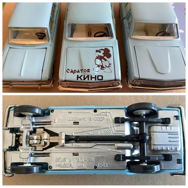 Uurin aga seetõttu, et mudel oli karbis, see aga templiga augustist 82. Lisan pildi ka põhjast, kus nii “sdelano v” kui ka “made in”, saan aru, et põhjad muutusid kakskeelseks pisut hiljem. Või eksin? Välistada ei saa ka võimalust, et karp ei kuulu nimetatule. Soetatud kogus oli kokku kolm Volgat, ülejäänud kahe puhul mudeli ja karbi sobivuses ei kahtle.