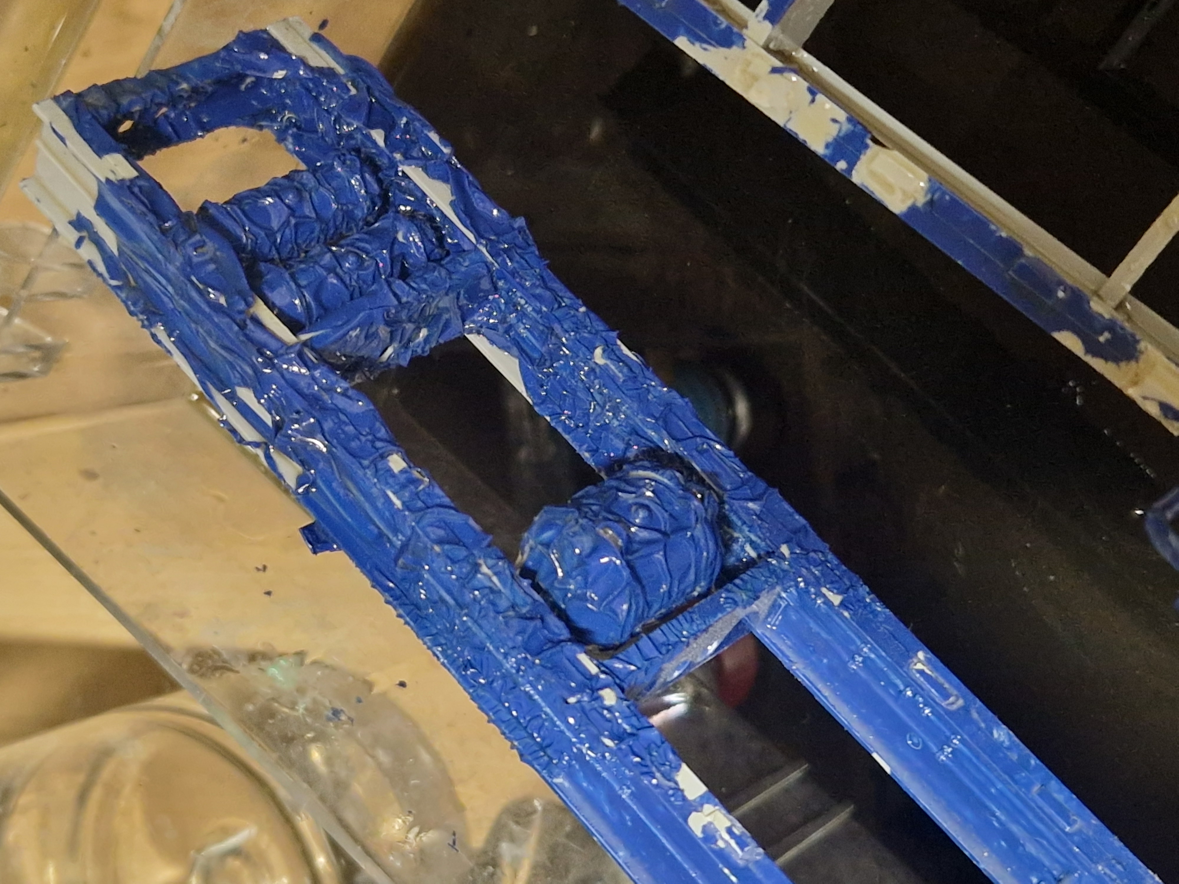 Ja jupid tahavad korraliku puhastust saada ja valujälgede eemaldamist, tööd on palju. Väga laiali võtta ei saa kuna siis lähevad asjad päris katki. Vasakul on puhastatud ja paremal vajas veel Õnneks on värvutud pintsliga. Potisinine värv tuli kenast lahti.