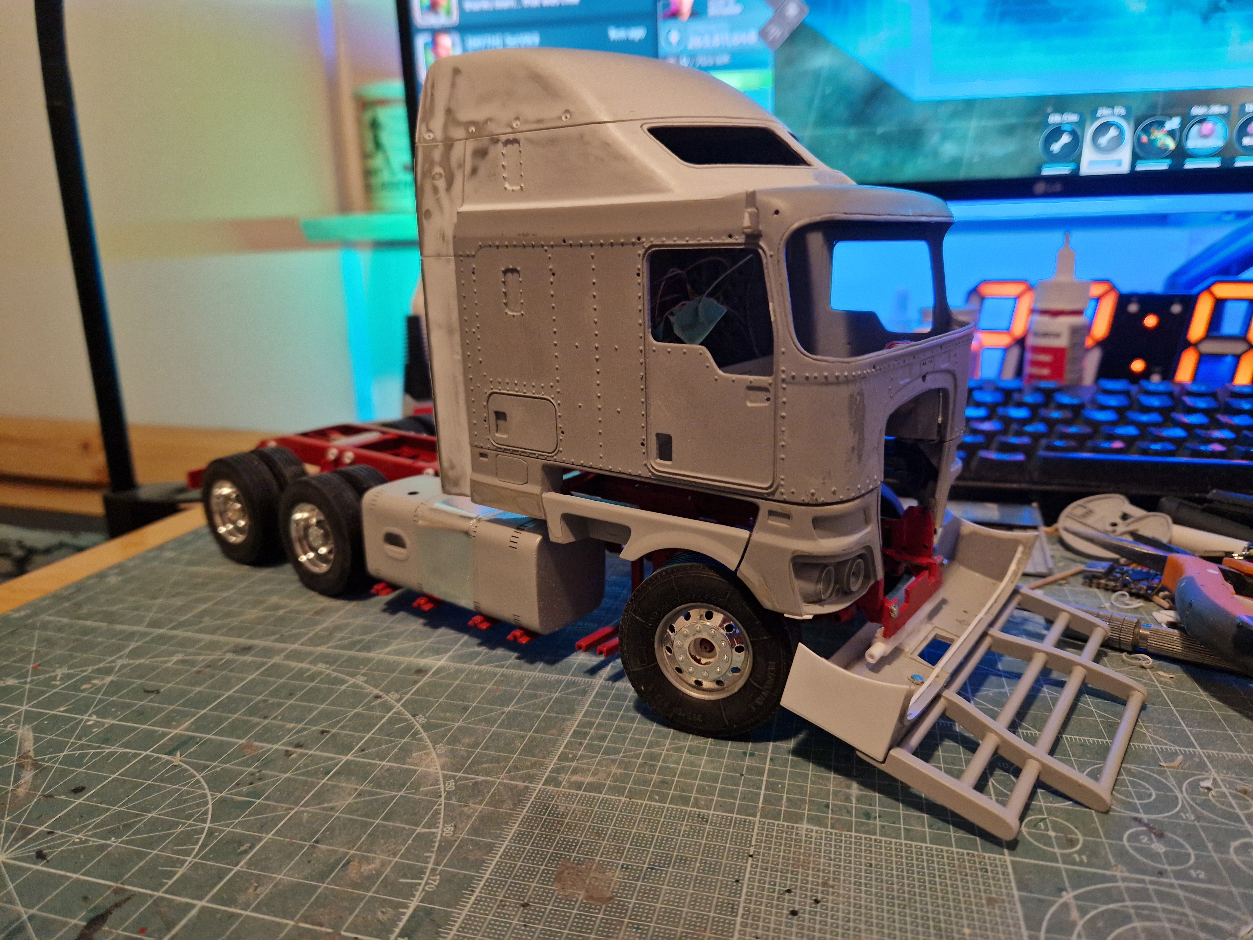 Otsustasin jätkata väga suure projektiga ja seda ka foorumiga jagada kuna see sahtlisse ei mahu. Ehk siis minu come back mudel. Koosneb siis kolmest Revelli kärust ja rekka on A&N toode (tellitud) Kenworth k200.